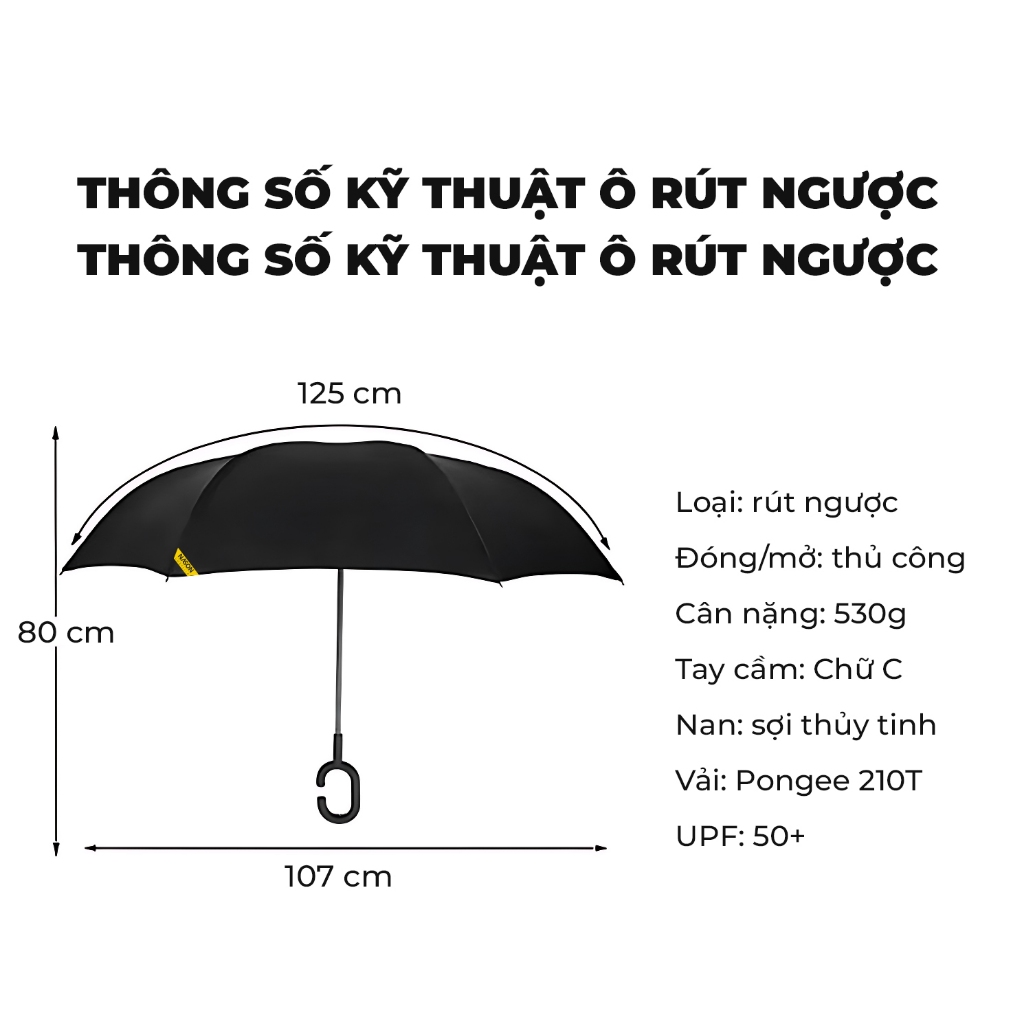 ☂ Chống nắng, chống thấm vượt trội: Vải dù 210T Pongee cao cấp, chống tia UV UPF>50+, bảo vệ da hiệu quả.