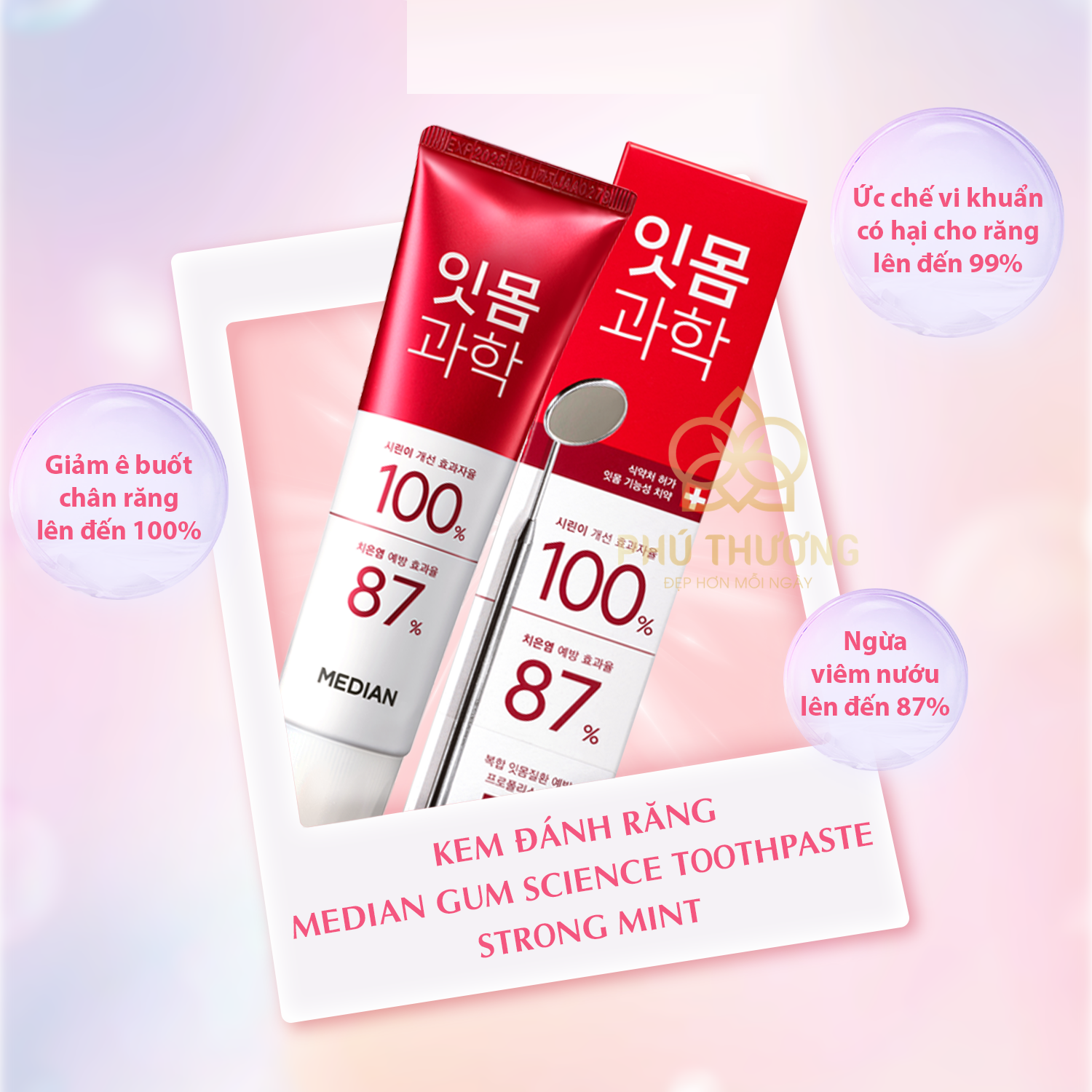 - Median Gum Science Toothpaste Clean Mint phòng ngừa và giảm ê buốt, phòng ngừa viêm nướu và viêm nha chu, dành cho răng nhạy cảm.