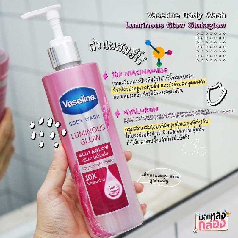 1️⃣ Vaseline Body Wash Luminous Glow (Màu hồng):